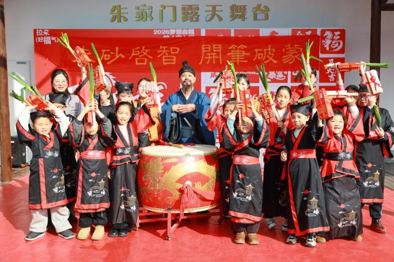 活动在庄重的开笔礼中拉开帷幕。孩子们依次完成沃盥净手、正衣冠、拜师礼、朱砂启智、诵读经典、开笔破蒙等传统仪程,在浓浓的仪式感中感受“勤学、明礼、立志”的文化内涵。亲子共书“人”字,击鼓明志,品尝寓意“聪明”的馄饨,领取“金榜题名”礼包……每一个环节都浸润着对传统文化的敬畏与传承。